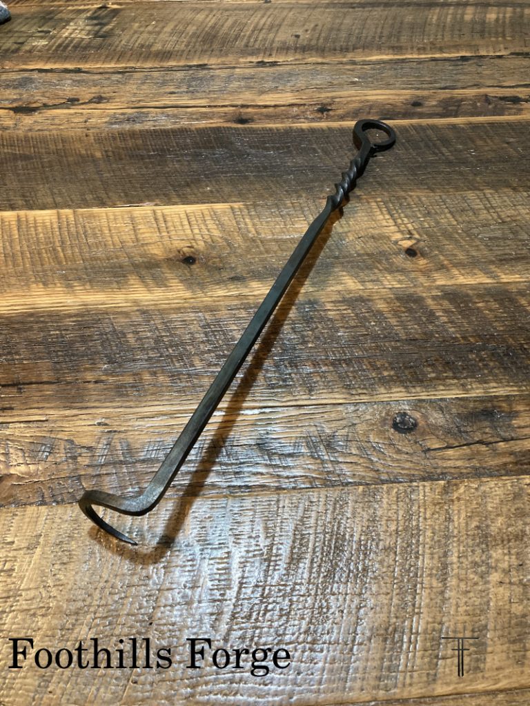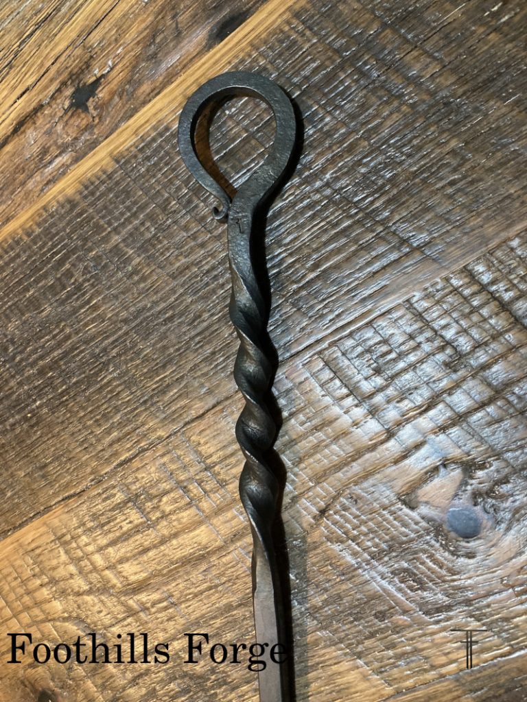 $185.00This steak turner can be used to cook your favorite cuts of meat on the grill. The flat diamond twist handle allows the steak turner to be both functional and decorative. The steak turner is approximately 20 inches long, and is crafted using 3/8 inch mild steel square bar. Each set is hand crafted so slight variations in length should be expected.